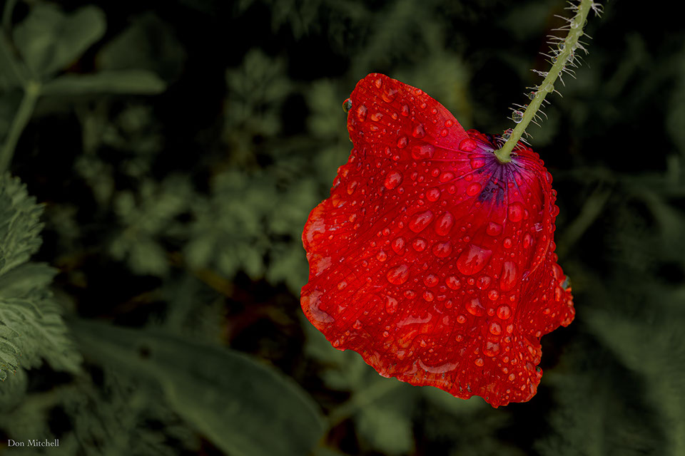 Out on the meadow there was a lone California poppy that the rain had bent over.